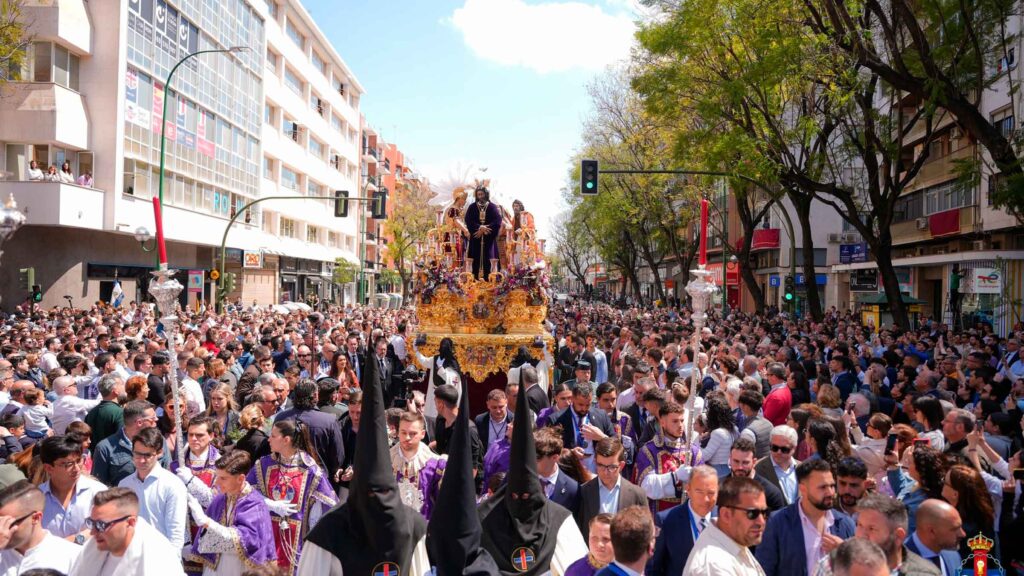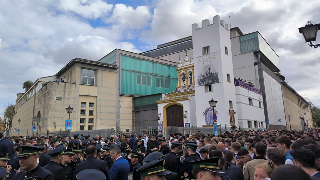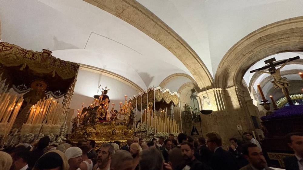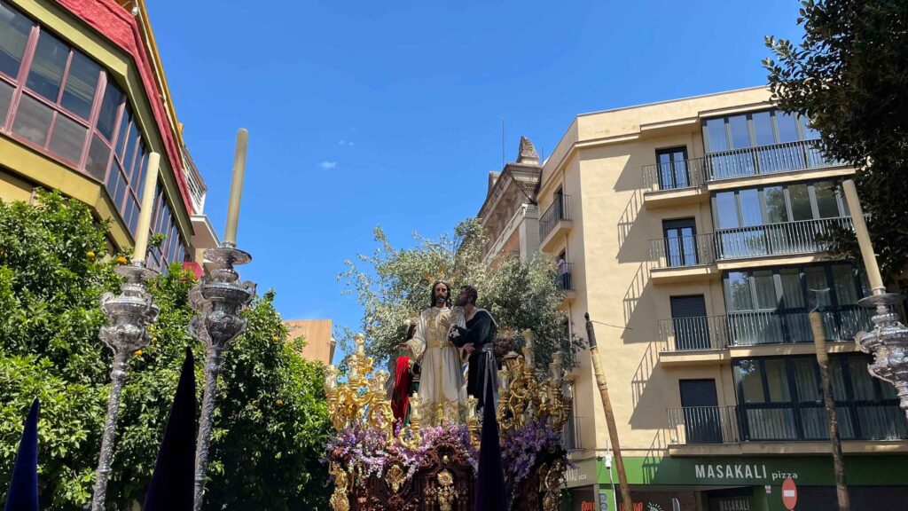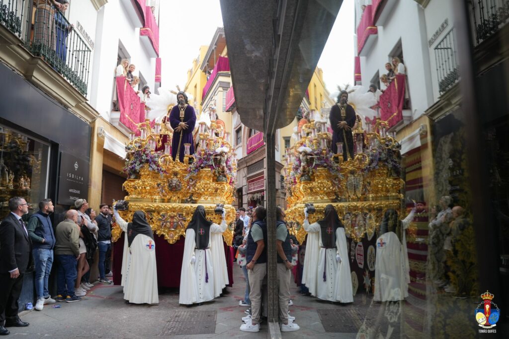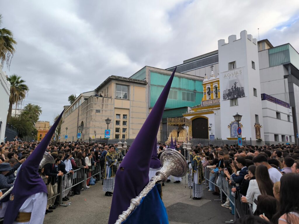 Jesús Cautivo de Santa Genoveva acaba de cruzar las puertas de la parroquia. Las dos primera cofradías del Lunes Santo ya recorren Sevilla en su estación de penitencia.