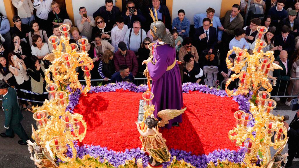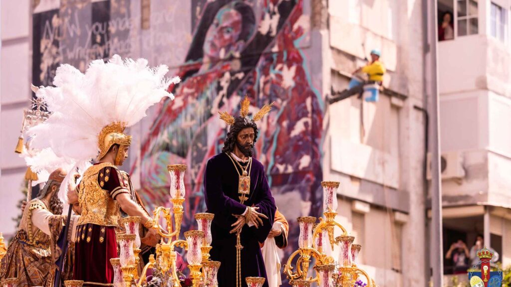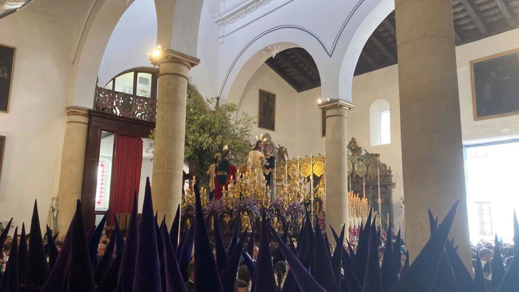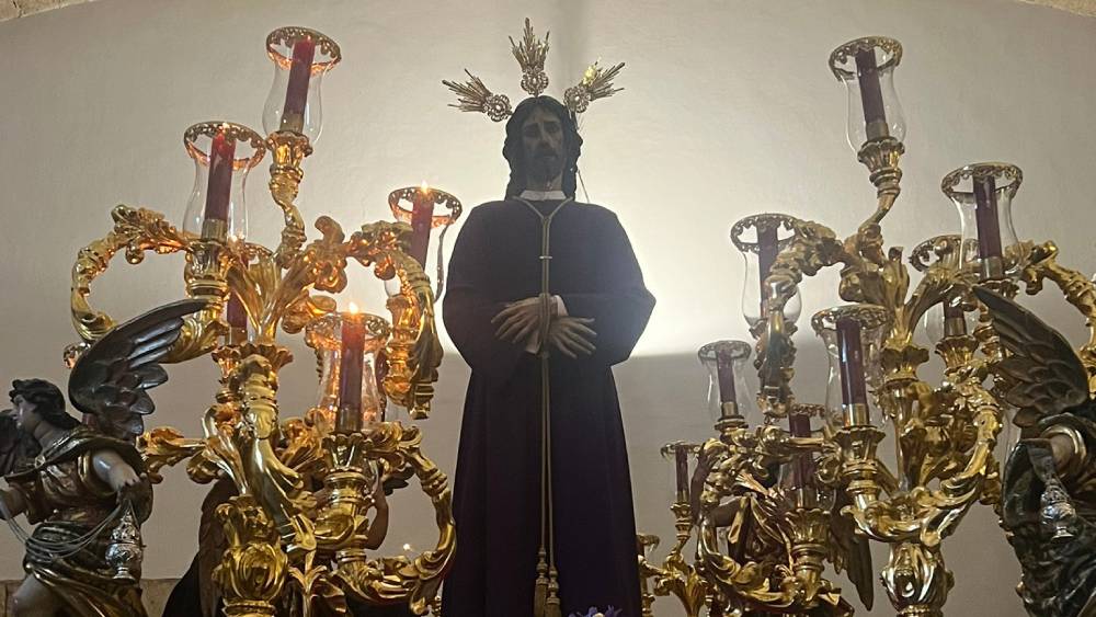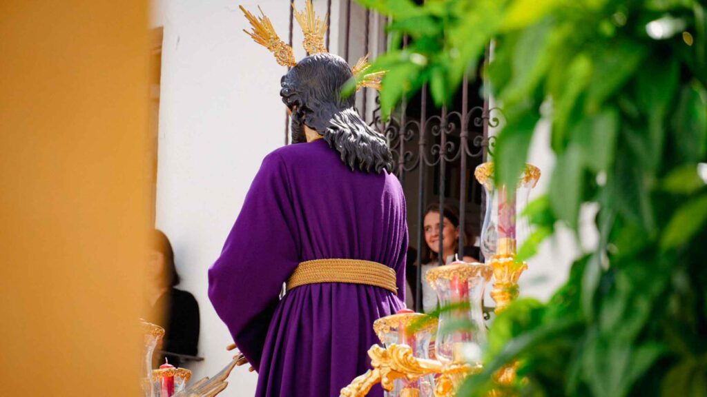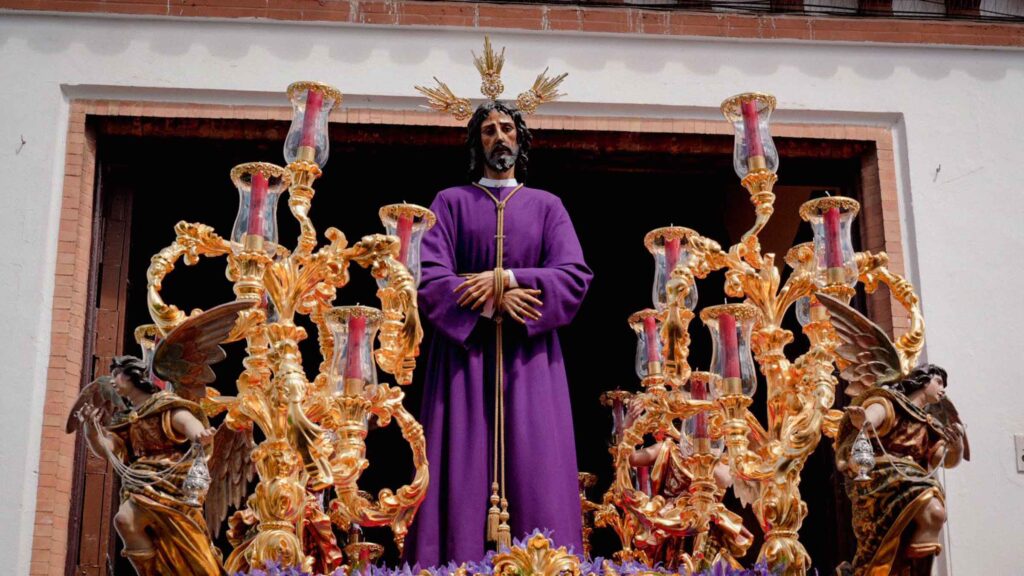 Jesús Cautivo de Santa Genoveva acaba de cruzar las puertas de la parroquia. Las dos primera cofradías del Lunes Santo ya recorren Sevilla en su estación de penitencia.