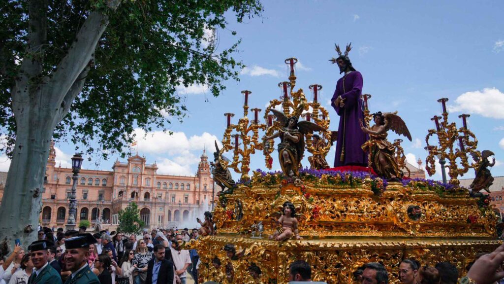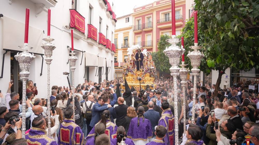 El paso de misterio de Ntro. Padre Jesús Cautivo y Rescatado sale a las calles de su barrio. La primera imagen del Lunes Santo ya recorre las calles de la ciudad de Sevilla.