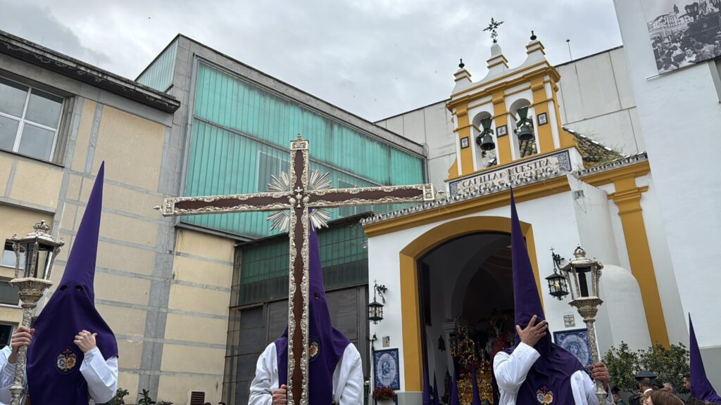 La Cruz de Guía de la Hermandad de San Gonzalo sale puntual de las puertas del tempo. Ya son cuatro las cofradías que recorren las calles de Sevilla.