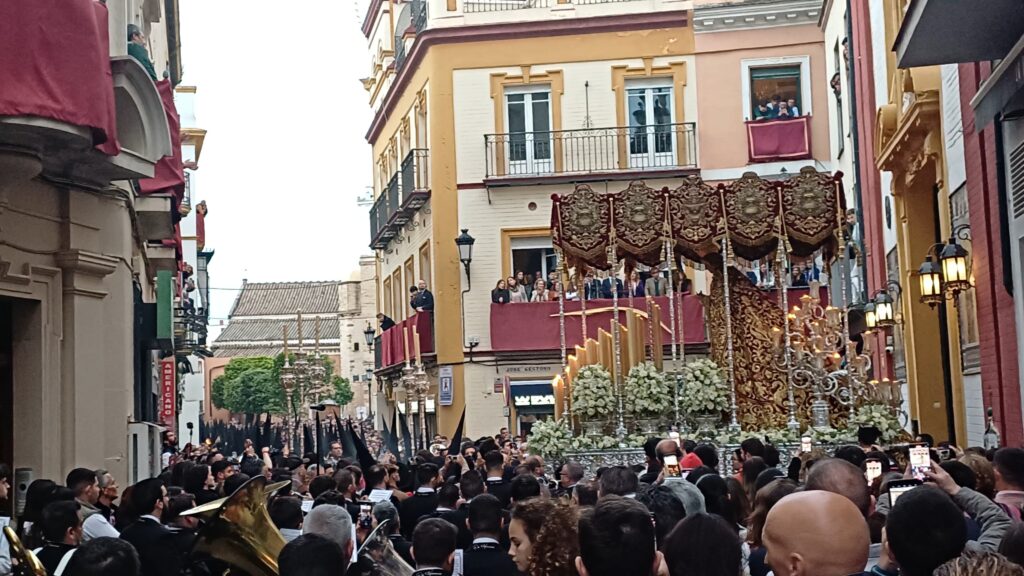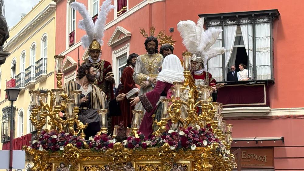 La Hermandad del Cristo de Burgos ya está en la calle, por lo que hay pleno de cofradías en este Miércoles Santo después de dos jornadas con suspensiones y refugios debido a la inestabilidad meteorológica.