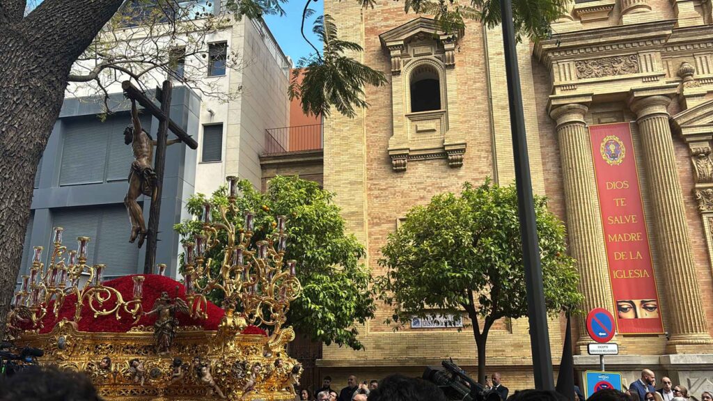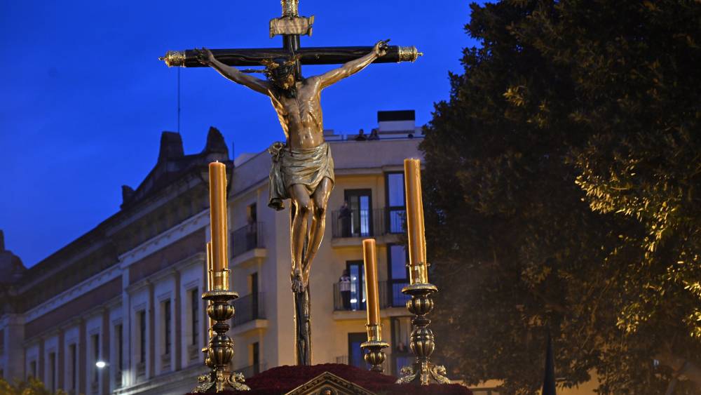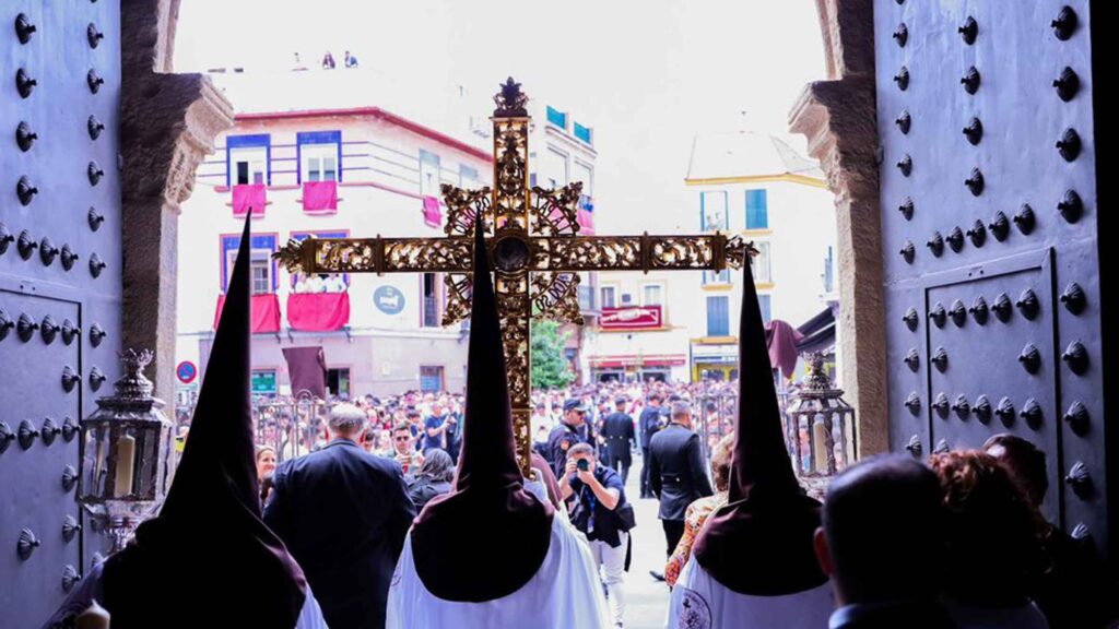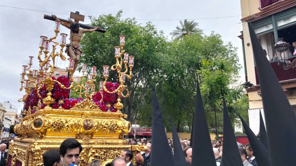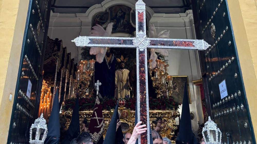 Arranca la estación de penitencia de la Hermandad del Buen Fin. La Cruz de Guía de la corporación cruzaba las puertas de San Antonio de Padua a las 15:50 horas. El Santísimo Cristo del Buen Fin ya recorren las calles de Sevilla en esta jornada de Miércoles Santo.