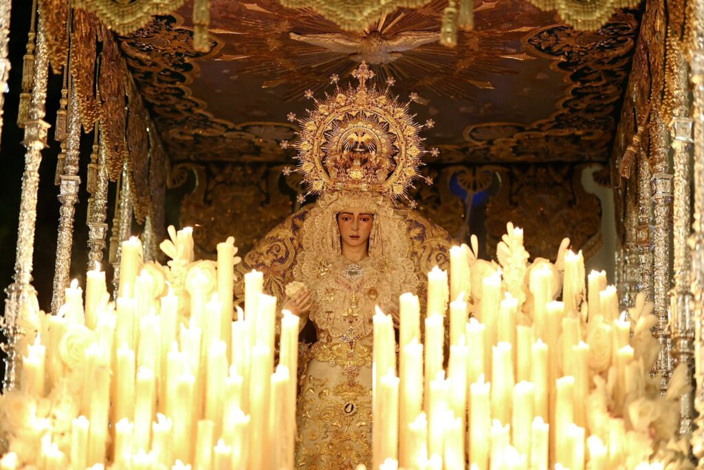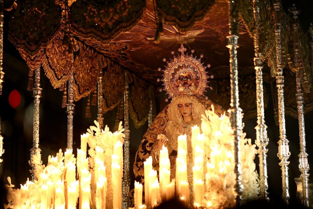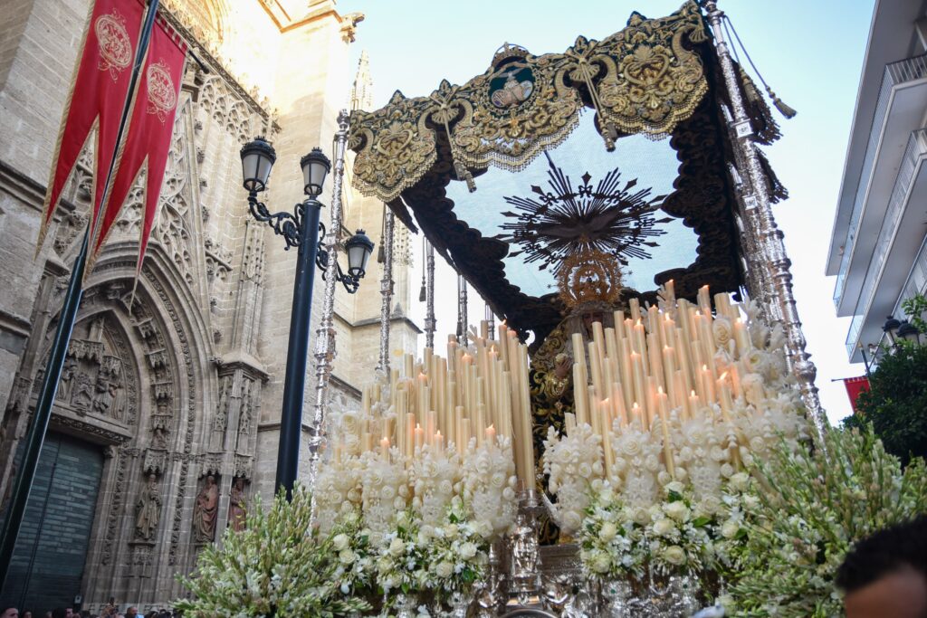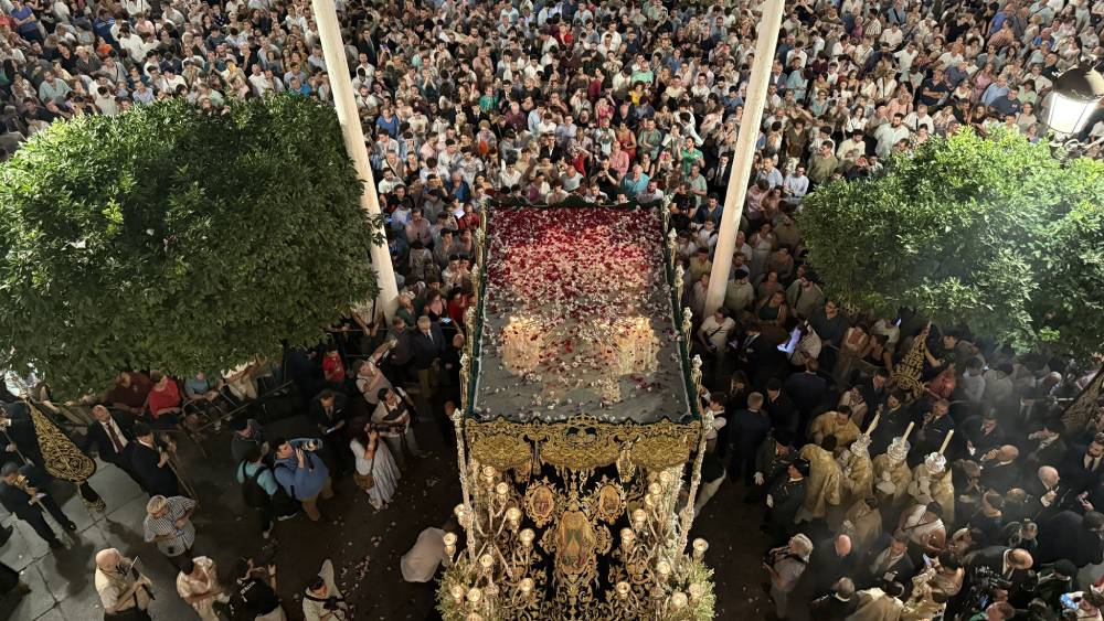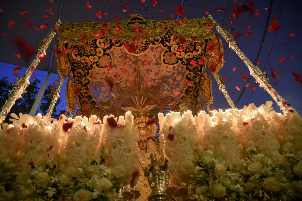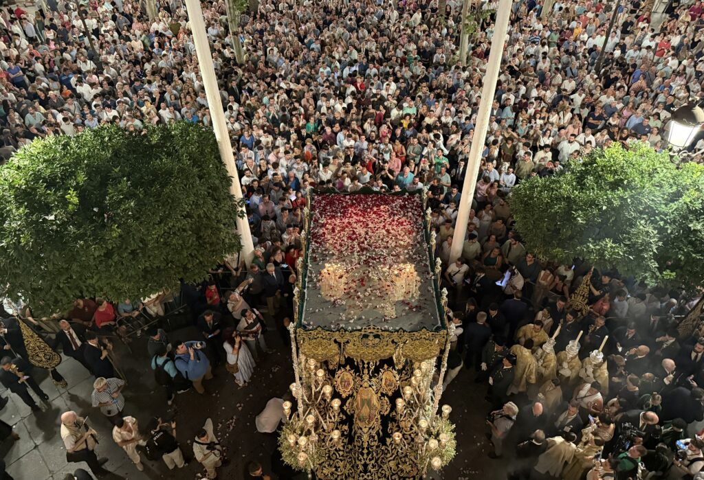 La Virgen del Rocío coronada recorrió las calles de una Sevilla a rebosar de fieles y devotos en una procesión triunfal que se alargó hasta las cinco de la madrugada, hora en la que el palio atravesó la puerta de la Iglesia de Santiago. Este 5 de julio quedará grabado en la memoria de todos los cofrades de la Hermandad de la Redención, así como en todos aquellos miembros de otras corporaciones, sobre todo de las rocieras, que se sumaron al júbilo en la Plaza del Salvador.