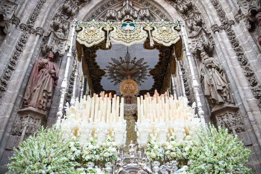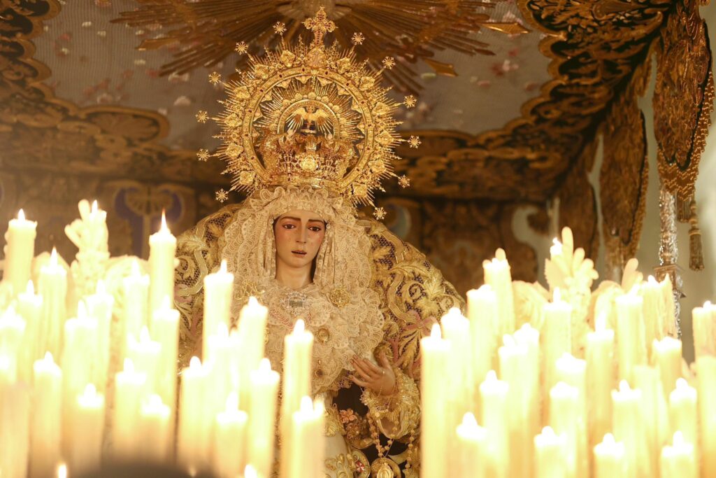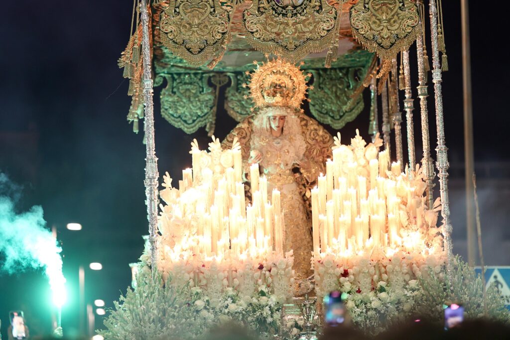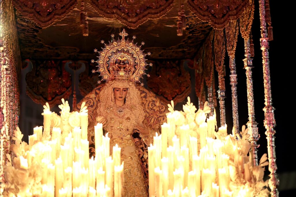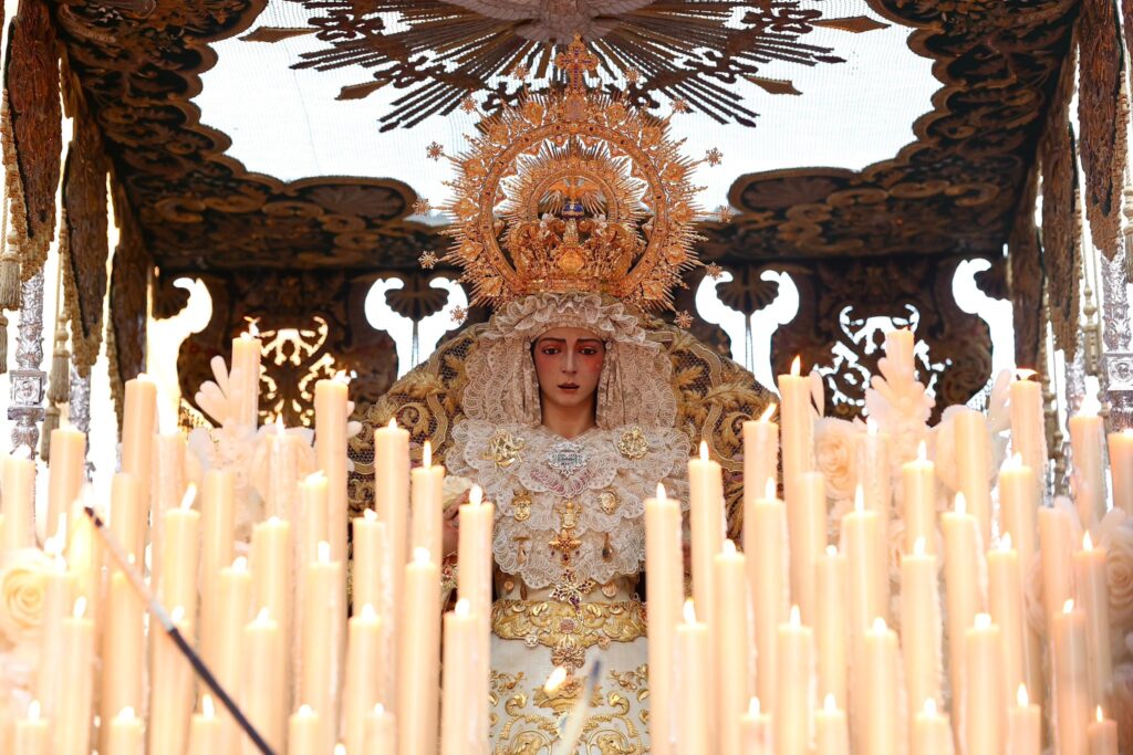 La Virgen del Rocío coronada recorrió las calles de una Sevilla a rebosar de fieles y devotos en una procesión triunfal que se alargó hasta las cinco de la madrugada, hora en la que el palio atravesó la puerta de la Iglesia de Santiago. Este 5 de julio quedará grabado en la memoria de todos los cofrades de la Hermandad de la Redención, así como en todos aquellos miembros de otras corporaciones, sobre todo de las rocieras, que se sumaron al júbilo en la Plaza del Salvador.