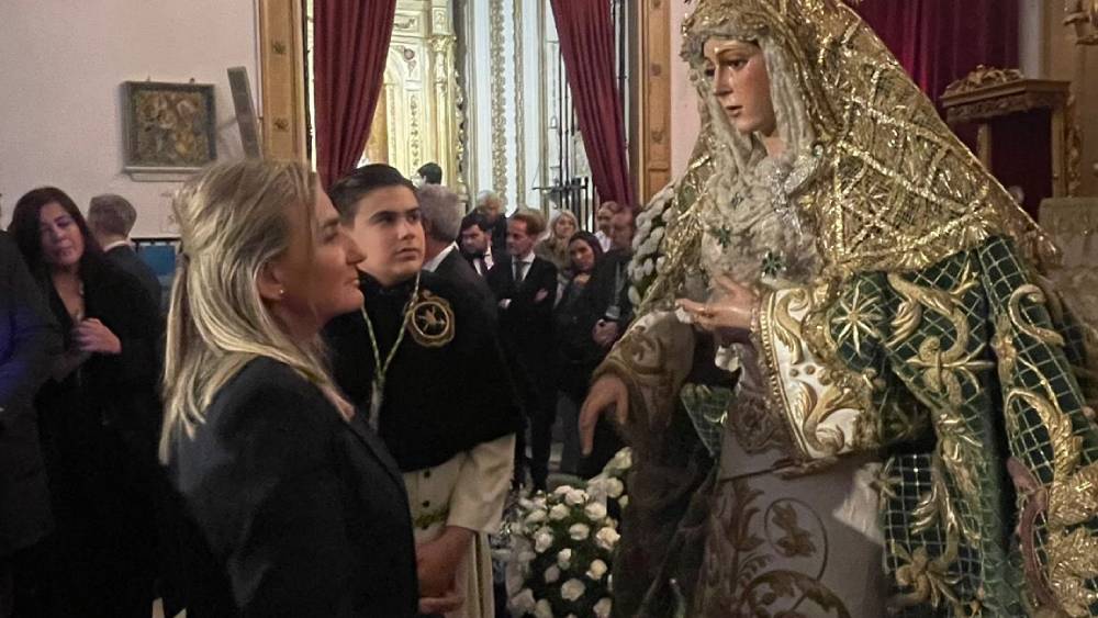 Ese día, festividad de la Esperanza, la entonces delegada del Gobierno en Castilla-La Mancha acudió al templo de San Gil para participar en el Devoto Besamanos de la Virgen de la Esperanza Macarena, una de las citas más emocionadas del calendario de la hermandad.