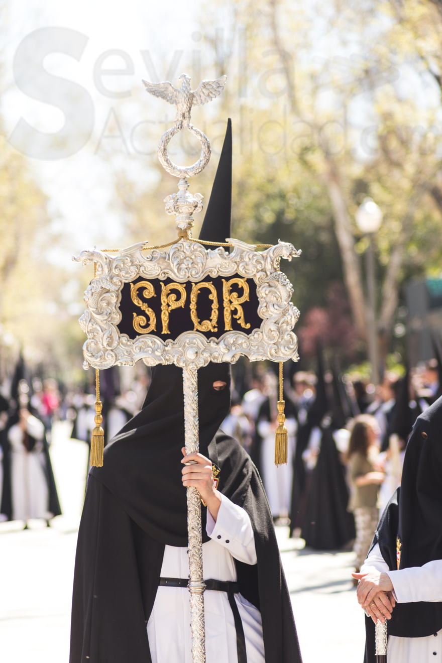 Este Lunes Santo comenzaba con la apertura de las puertas de la Parroquia de San Ignacio para que la Cruz de Guía Hermandad del Polígono San Pablo saliera a la calle en una jornada de muchos kilómetros. Con muchas expectativas para ver el nuevo palio de la Virgen del Rosario Doloroso, en ejecución durante cuatro años en el taller de Charo Bernardino y con diseño de Javier Sánchez de los Reyes.