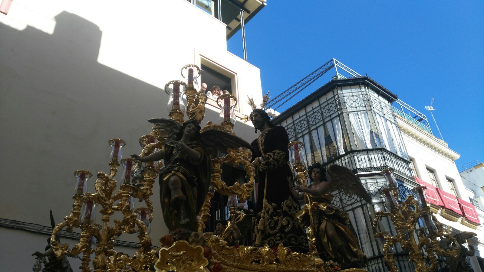 Tras su esperada salida, y ya hacia las cuatro de la tarde, los devotos de la hermandad de la La Redención vivían uno de los momentos más emocionantes de su Estación de Penitencia a medida que el misterio reviraba a Juan de Mesa con el acompañamiento de la marcha ‘Triana’ interpretada por la Agrupación Musical Nuestro Padre Jesús de la Redención.