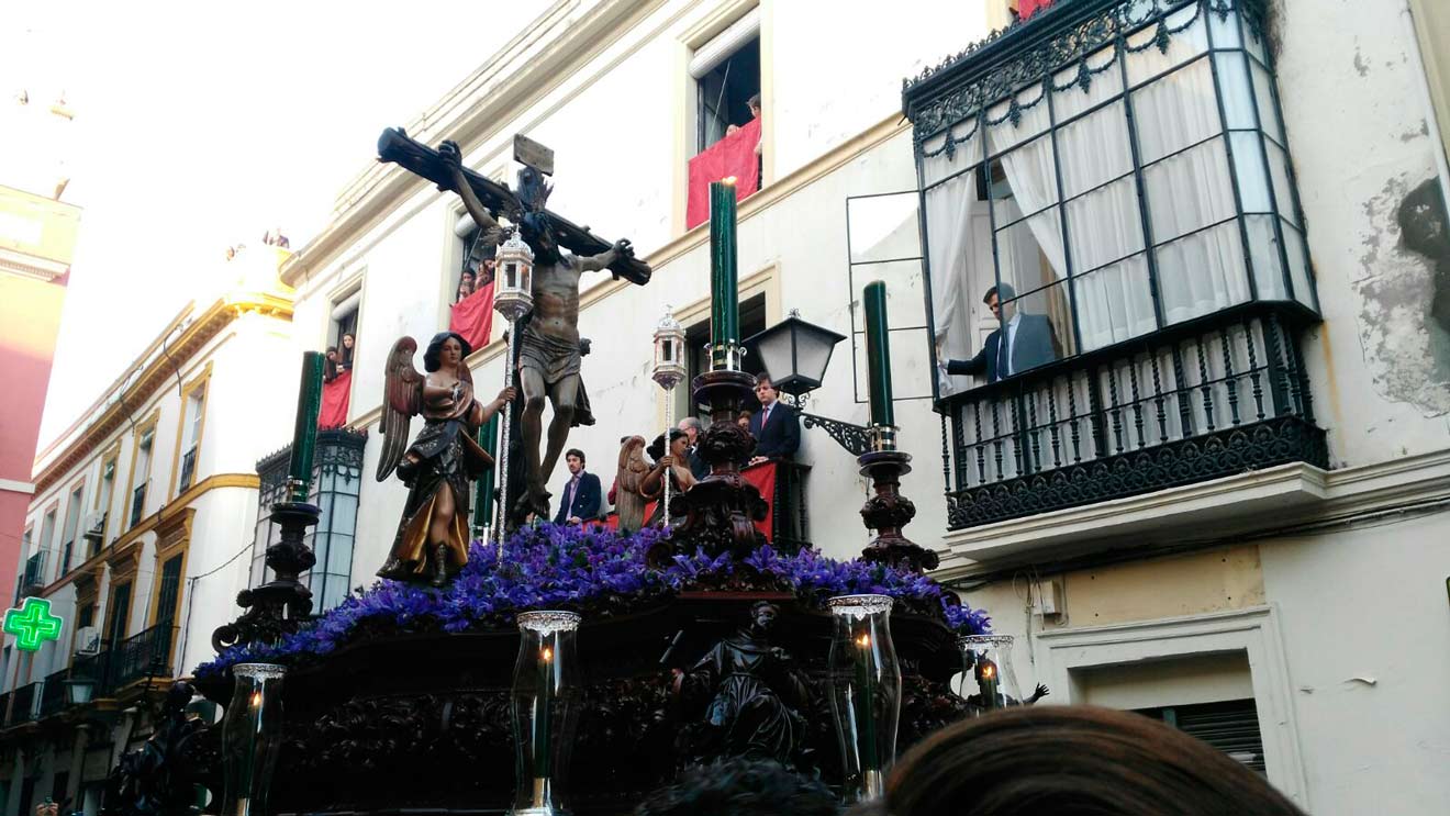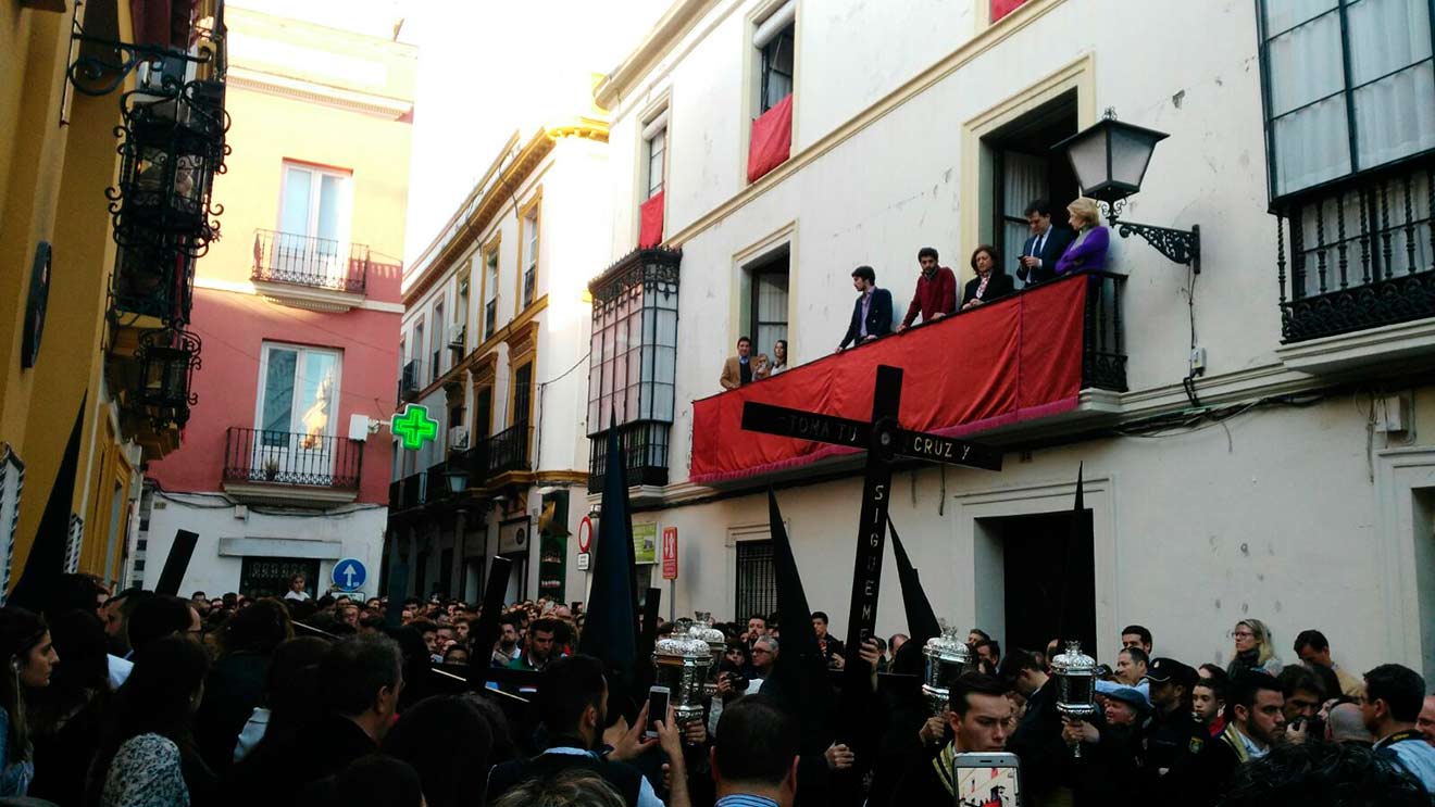 En esos momentos, el paso de misterio de San Pablo se dirigía hacia La Campana por la calle San Esteban. Y la Cruz de Guía de Redención salía a la Plaza de Santiago. También se abrían las puertas de la Iglesia del barrio trianero del Tardón a la espera de la salida de San Gonzalo.