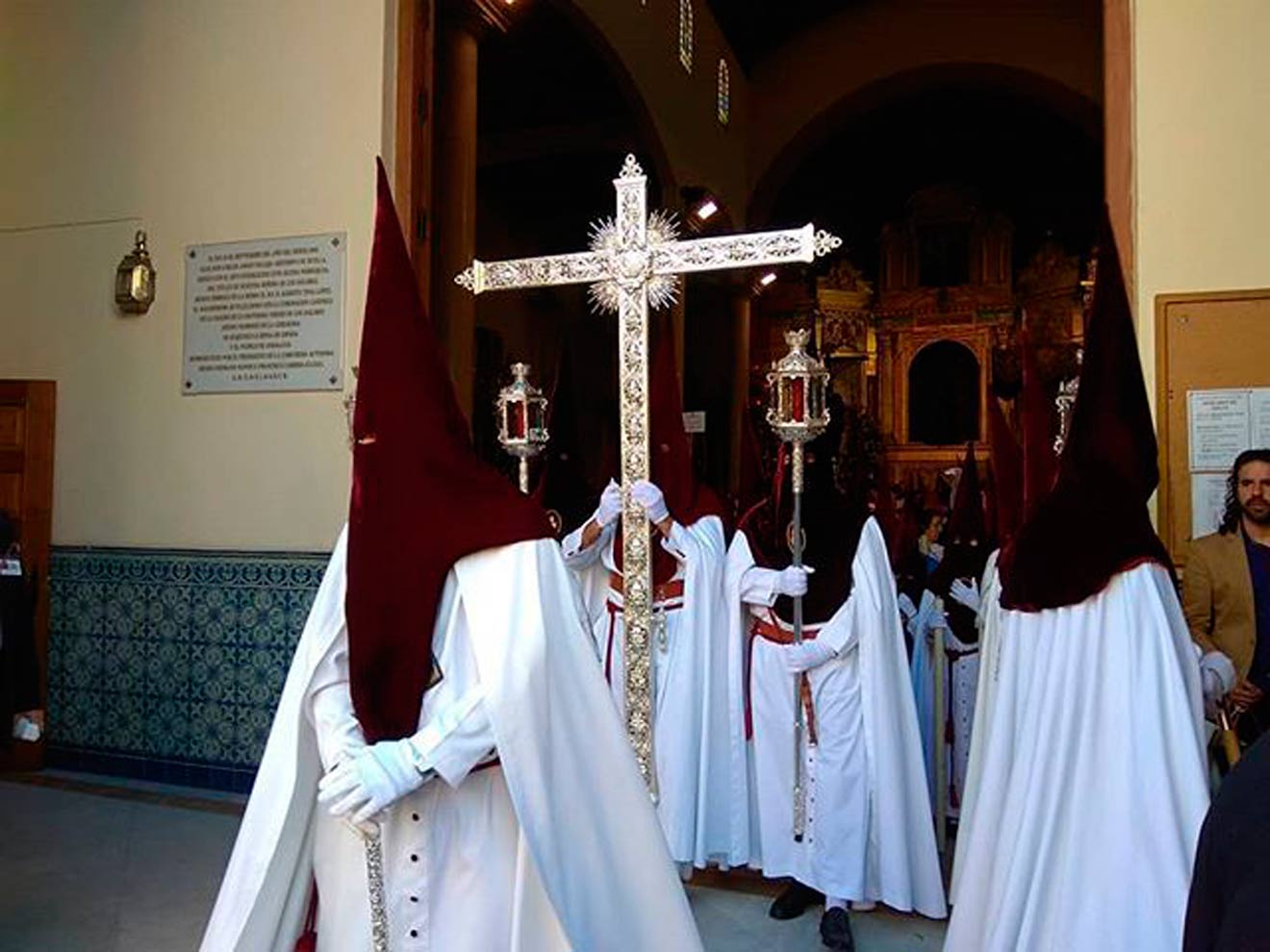 A las 12:12 horas se abrían las puertas de la Parroquia de Los Dolores y la cruz de Guía de la Hermandad del Cerro se ponía en la calle. La Hermandad del Cerro del Águila llevaba este año hasta 1.550 nazarenos aproximadamente para acompañar a sus titulares al centro de Sevilla.