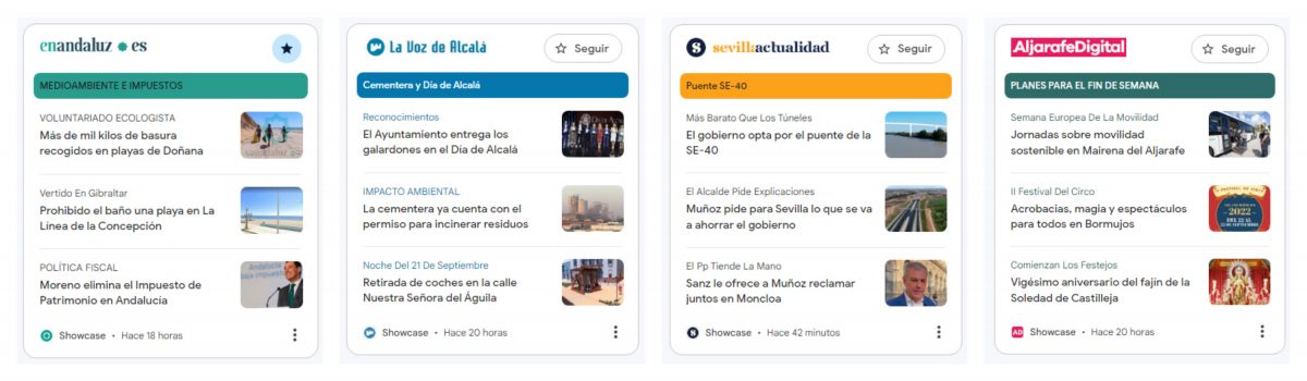 Google ha lanzado este jueves en España News Showcase con la participación de Sevilla Actualidad, un programa de contenidos online bajo licencia, especialmente seleccionados por los medios. News Showcase está ahora disponible en España con la participación de 60 medios que, en conjunto, representan más de 140 publicaciones, entre ellas Sevilla Actualidad, enandaluz.es, La Voz de Alcalá y Aljarafe Digital, todos ellos de la editora Maravedismo.