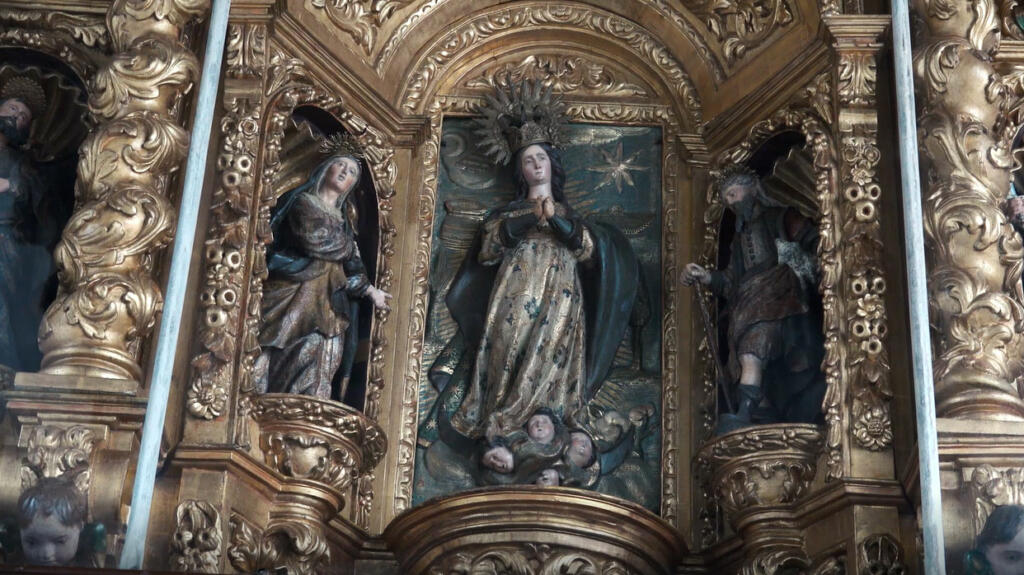 Respecto al retablo de ‘La Inmaculada Concepción’, se han corregido los problemas estructurales que presentaba, así como la reintegración volumétrica de las tallas en los casos en que se consideró necesario. En la superficie, en las capas pictóricas, se ha actuado en torno a los desprendimientos de policromía y el oscurecimiento de los barnices, se han eliminado burdos repintes de época desconocida, sin descuidar el tratamiento de los elementos metálicos que acompañan a las esculturas.