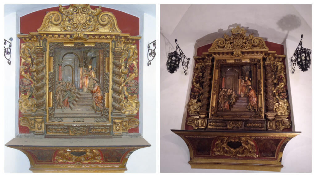 Los dos retablos, que el público puede volver a disfrutar desde hoy, han recibido un tratamiento tanto estructural, en su parte arquitectónica o mazonería, como también de tipo superficial o de las distintas capas que los componen. Además, los profesionales han actuado sobre el relieve y la ménsula en el caso de ‘La presentación de la Virgen en el Templo’, y sobre la urna, en el caso de ‘La Inmaculada Concepción’.