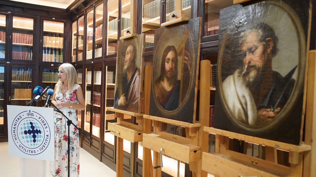 La consejera de Cultura y Patrimonio Histórico en funciones, Patricia del Pozo, ha presentado los resultados de la restauración realizada por el Instituto Andaluz del Patrimonio Histórico (IAPH) de tres tablas pintadas al óleo propiedad de la Universidad Loyola, de finales del siglo XVII, próximas al pintor Esteban Márquez, seguidor de Bartolomé Esteban Murillo.