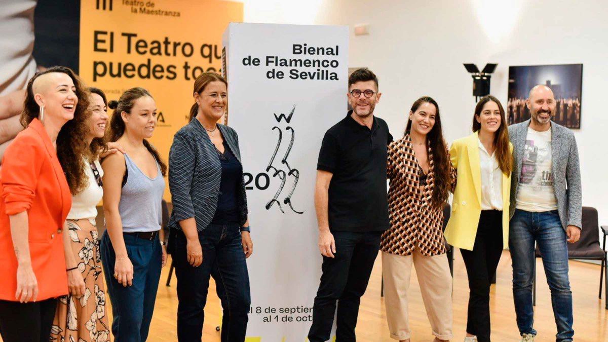 Acompañaba a las artistas la delegada de Presidencia y Hacienda del Ayuntamiento de Sevilla, Sonia Gaya, quien ha puesto en valor la «variedad y riqueza creativa de las mujeres que en esta Bienal estarán en el Teatro de la Maestranza. Tras la inauguración el pasado sábado de la XXII Bienal a cargo de Eva Yerbabuena y una noche memorable como la que vivimos anoche con Vicente Amigo, nos quedan por delante ocho propuestas genuinas y singulares conducidas por siete mujeres creadoras que innovan en cada creación que nos plantean, mirando al pasado pero sembrando las semillas para el futuro».