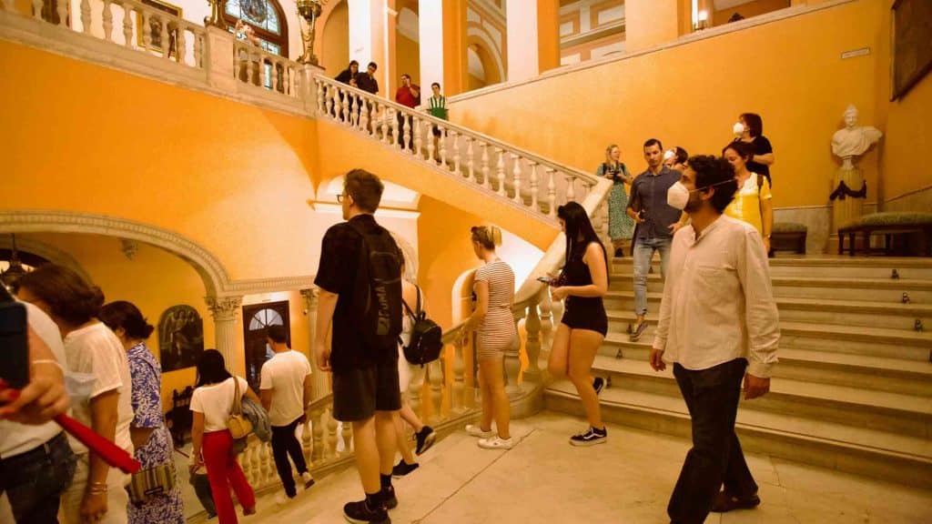 Un centenar largo de espacios entre museos, edificios patrimoniales y espacios públicos, dispuestos a abrazar una noche cultural que fue aprovechada de forma masiva por sevillanos y sevillanas en una larga noche en blanco.
