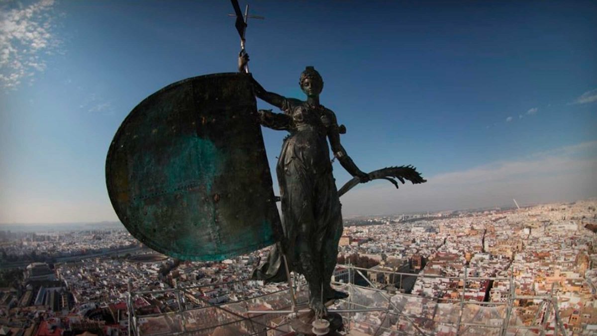 El Giraldillo muestra una Minerva guerrera, aunque adaptándola a una manera religiosa, fruto del tiempo en el que se vivía. En esos momentos España se disputaba la hegemonía del Mediterráneo con el Imperio Turco, Europa se enfrentaba a la Contrarreforma y en la Península Ibérica se combatía la rebelión de los moriscos. Por lo tanto, con la figura del «Coloso de la Fe victoriosa» se pretendía dar un mensaje claro del triunfo de la doctrina católica sobre sus enemigos.