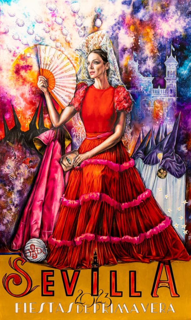 El Ayuntamiento de Sevilla ha presentado este miércoles el cartel de las Fiestas de Primavera de 2023, una obra del pintor José Tomás Pérez Indiano que ha querido representar un poema «a la pasión y a la fuerza» con la que la ciudad vive sus días más esperados con la figura de la mujer sevillana como protagonista, representada por la presentadora y modelo Eva González.