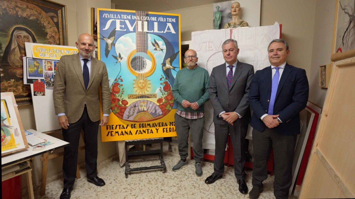 El alcalde de Sevilla, José Luis Sanz, ha descubierto, junto a los artistas del taller de Daroal, el cartel de las Fiestas de la Primavera de Sevilla de 2025, realizado por los artistas Francisco Rovira y David Romero en un acto celebrado en el Salón Colón del Ayuntamiento de Sevilla.