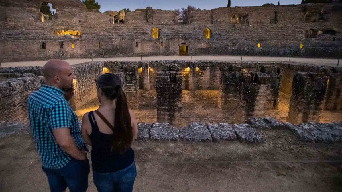 La Consejería de Cultura y Deporte realizará del 1 al 25 de octubre un ciclo de visitas nocturnas teatralizadas en el Conjunto Arqueológico de Itálica, en el que se propone un paseo onírico, combinando la ficción dramática y las instalaciones audiovisuales, por las entrañas del anfiteatro a través de la figura del emperador Adriano y Antínoo, el joven griego favorito del emperador.