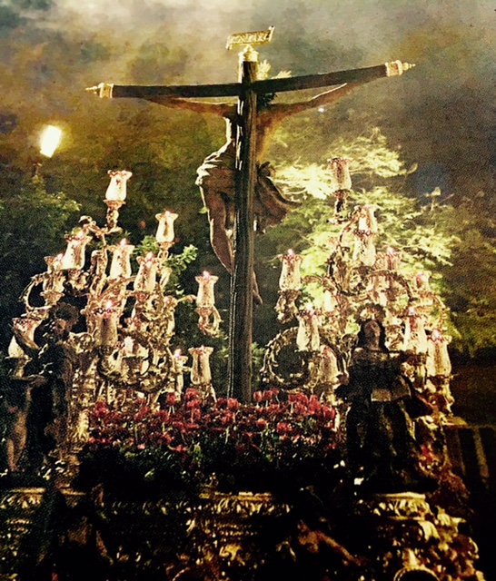 Despiden el paso con aplausos y lo mecen antes de retroceder y continuar. Un nudo en el pecho tiene Lola que le impide hablar. Y por las calles angostas, a pesar de la luz del día, los candelabros proyectan sombras que cobran vida en las paredes encaladas. La madera crujiendo al desplazarse el paso, el olor a vela, a flores, a incienso…