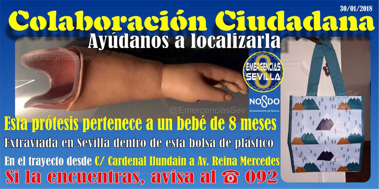 Publicado enSevilla Piden colaboración para encontrar la prótesis de un bebé perdida por Sevilla Actualidad 30 enero, 2018