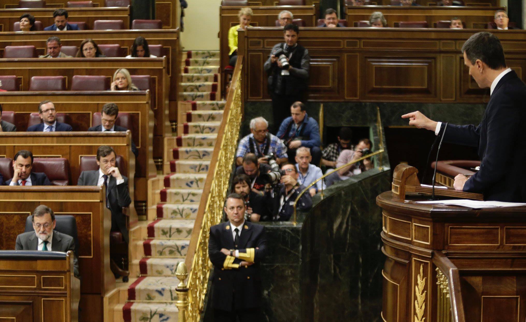 Si la moción logra la mayoría absoluta -al menos 176 votos- el candidato a la Presidencia se consideraría investido de la confianza de la Cámara. PSOE, Unidos Podemos, Compromís, Nueva Canarias, PDCat, ERC, EH-Bildu y PNV sumarían 180 votos.