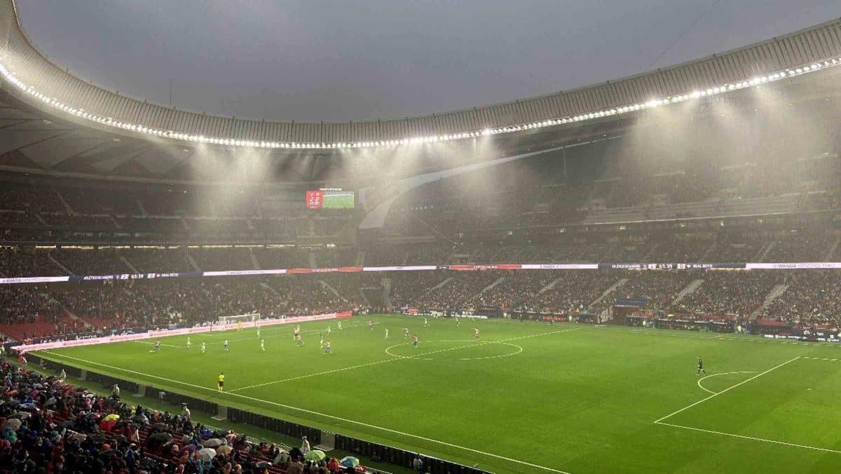 Partido en el estadio del Atlético de Madrid mientras llueve. Carrusel Deportivo
