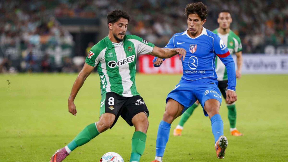 El esférico comenzó a rodar en La Cartuja tras guardar un minuto de silencio en memoria del socio número cinco de la entidad y a la joven Sandra Peña, fallecidos recientes que pasaron a formar parte del cuarto anillo. A los tres minutos del pitido inicial, el Atlético de Madrid asestó el primer golpe. Tras varios rechaces, Giuliano Simeone aprovechó su oportunidad y empaló uno de ellos desde el borde del área con una volea sensacional, cuya potencia hizo inútil la estirada de Pau López. El gol se convirtió en el pretexto perfecto para que los colchoneros jugaran a lo que más les gusta: la contra. Mientras el Real Betis buscaba avanzar en zona, los de Simeone aguantaban replegados en busca de un fallo que aprovechar. En uno de estos, un chut cruzado de Nico González estuvo cerca de convertirse en el segundo para los visitantes.