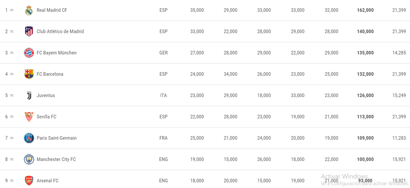 El ránking de clubes de la UEFA tiene en esta última actualización un gran protagonismo para los españoles. De los seis primeros, cuatro son equipos nacionales.