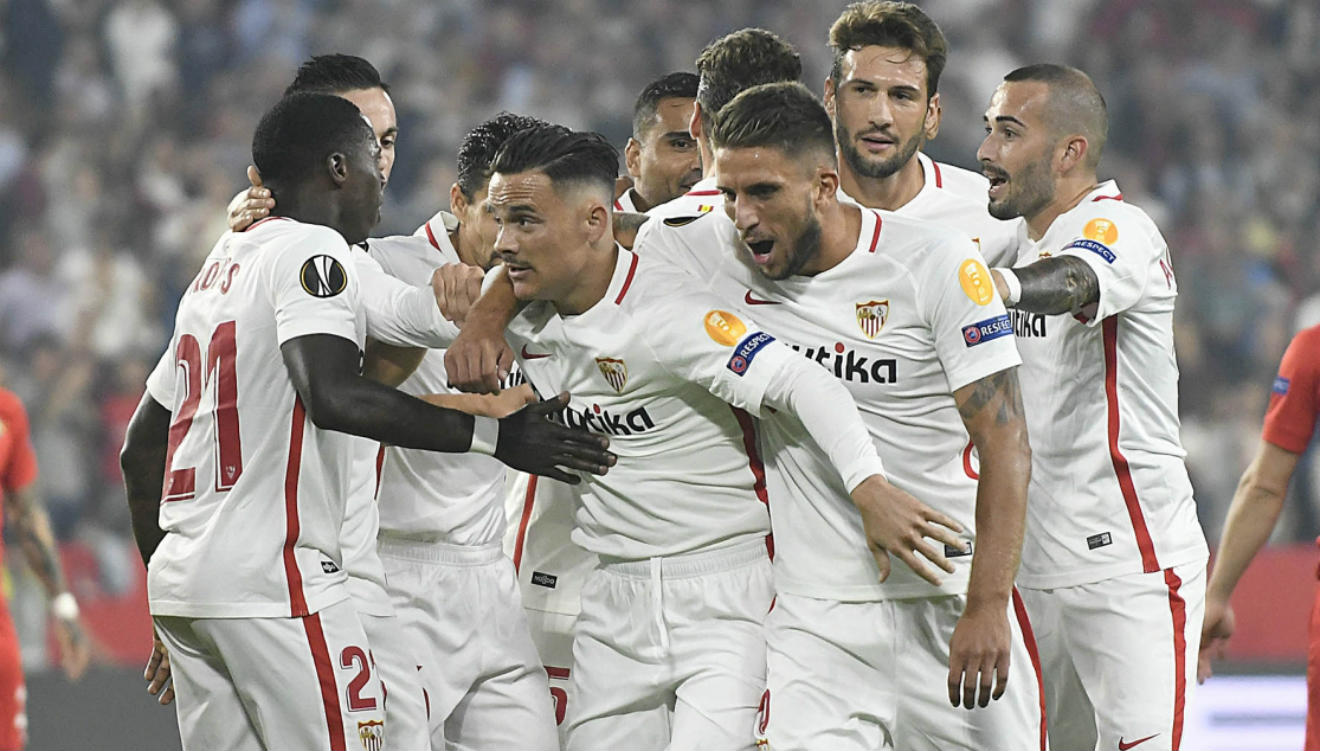 También de manera ajustada consiguió pasar a los dieciseisavos de final de la Europa League, sufriendo hasta el último partido para conseguir el pase. Un Sevilla que, siendo muy superior a sus rivales de grupo, tuvo que pasar de manera más holgada, pero sus malos resultados como visitante, con una victoria con un penalti de Banega en el campo del Akhisar y dos derrotas en Lieja y ante el Krasnodar.