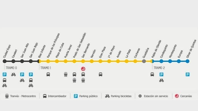 En Sevilla solo existe una línea de metro, la cual va desde Ciudad Expo hasta Olivar de Quintos, cruzando y conectando cuatro municipios sevillanos. Si bien la tarifa sencilla es de 1,35e, el precio sube según el número de «saltos» que se efectúen. Un salto es el cambio entre zonas tarifarias. En Sevilla hay tres: desde Ciudad Expo hasta Blas Infante; desde Blas Infante hasta Universidad Pablo de Olavide; y desde Universidad Pablo de Olavide hasta Olivar de Quintos. Adquirir el bono de ida y vuelta (2,70 euros) es más barato que comprar un solo viaje (1,35 euros), aunque lo más beneficioso es comprar un bonóqetro (0,82 euros).