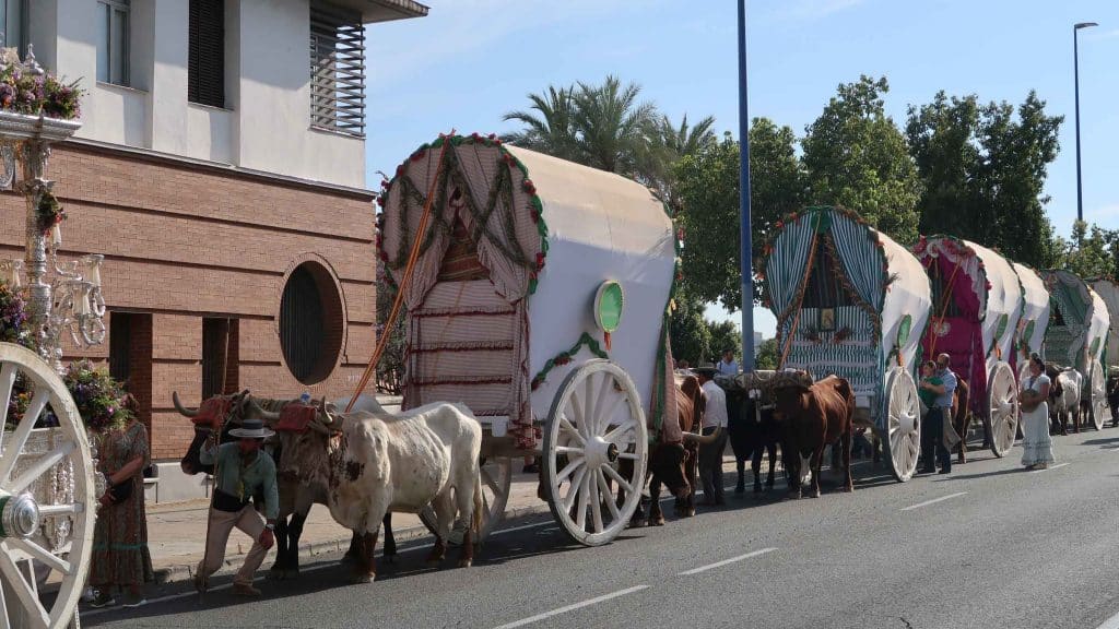Cinco hermandades rocieras de la capital volvieron la tarde del jueves a Sevilla –la sexta, la filial castrense con sede en Tablada lo hizo este miércoles–, tras su peregrinación a la aldea almonteña, lo que supuso cortes de tráfico en las calles por las que transitaban.