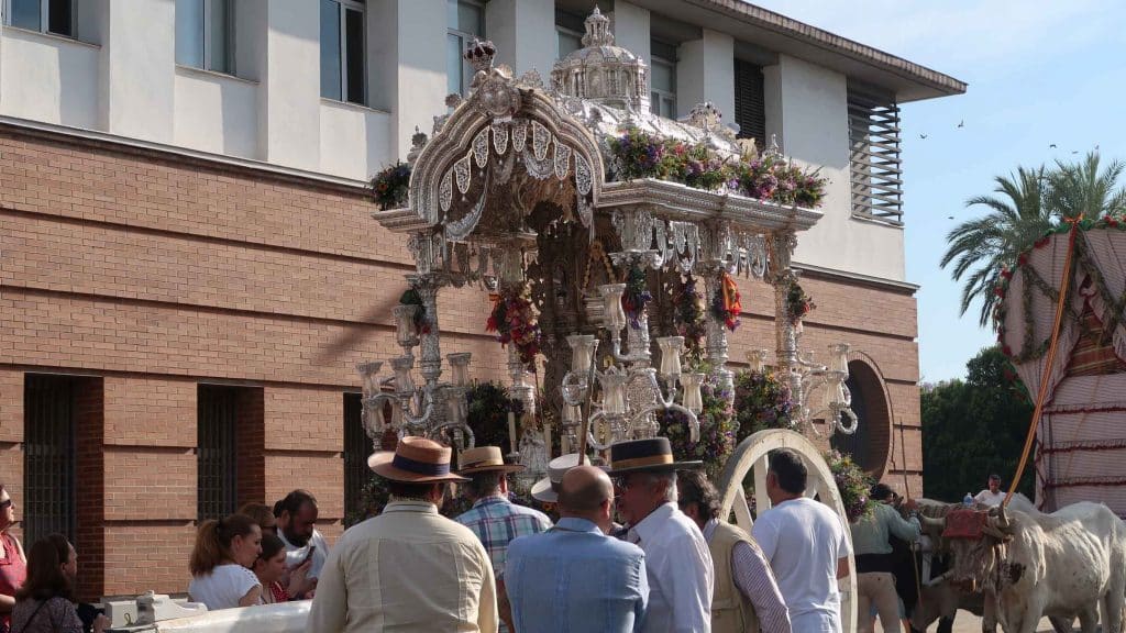 La filial de Sevilla volvió desde Blas Infante y Plaza de Cuba por el puente de San Telmo, Dos de Mayo, y Plaza de San Francisco. Los numerosos peregrinos, a pie y a caballo, así como los fieles y devotos que acompañaron a la carreta de plata por las calles de Sevilla despidieron al Simpecado en la Plaza del Salvador que finalizó su recorrido a las 23:05 horas.