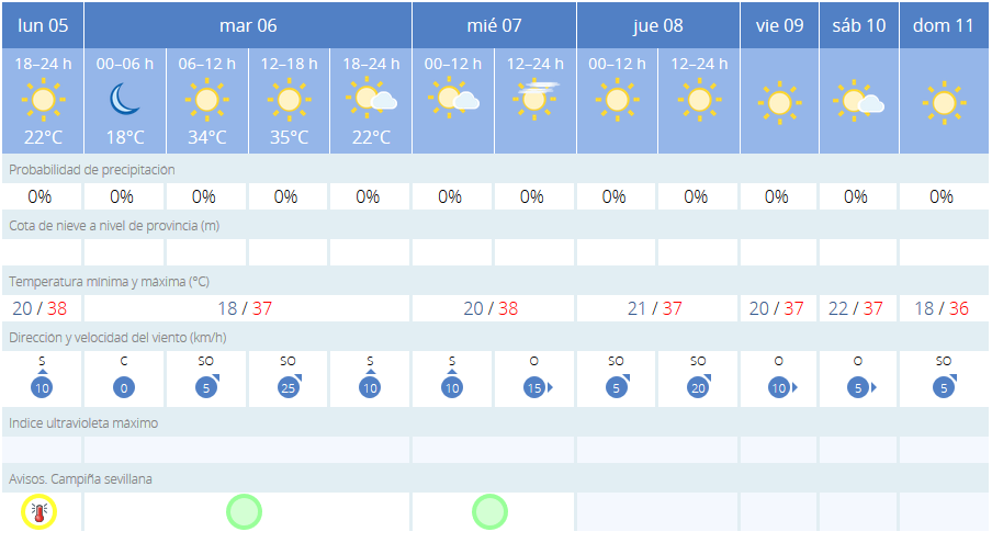 Se alejan por tanto los termómetros de las medias algo más templadas de la semana anterior, entrando de lleno en el agosto sevillano.