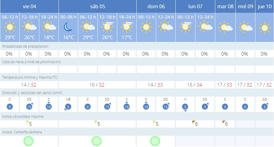 Los 32 grados de máxima de este viernes y el sábado subirán a 33 el domingo y a 34 el lunes, será el pico del inicio de la semana, ya que a partir del martes bajarán lentamente.
