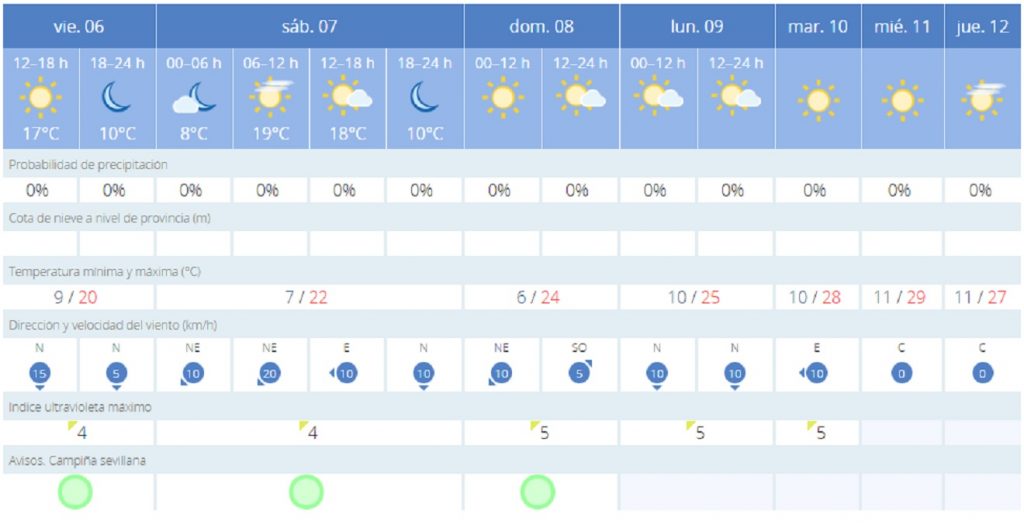Ya a partir del lunes, se espera un gran ascenso de las temperaturas y se llegarán a alcanzar en la capital hispalense unas máximas que rondarán los 30 grados.