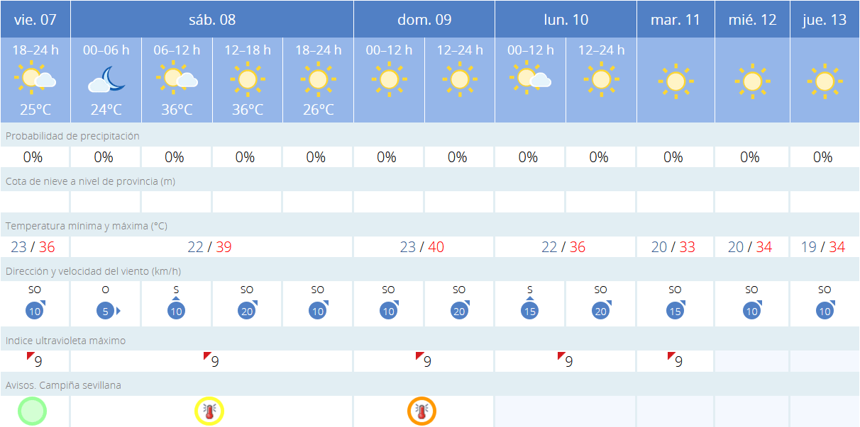 El fin de semana traerá subida de temperaturas en Sevilla, alcanzándose los 40 grados.