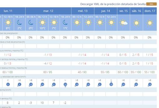 Esta bajada de las temperaturas traerá consigo una posibilidad de que se produzcan heladas, aunque la posibilidad de lluvia y nieves seguirá siendo nula, por lo que Sevilla seguirá esperando para volver a ver la ciudad cubierta de nieve como ocurriera en 1954.