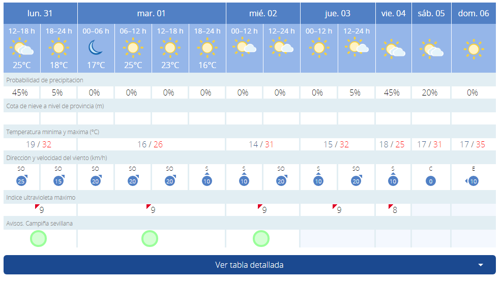 Asimismo, las probabilidades de precipitaciones a lo largo de la semana son bajas a excepción de la jornada del viernes que según la AEMET, hay un 45 por ciento.