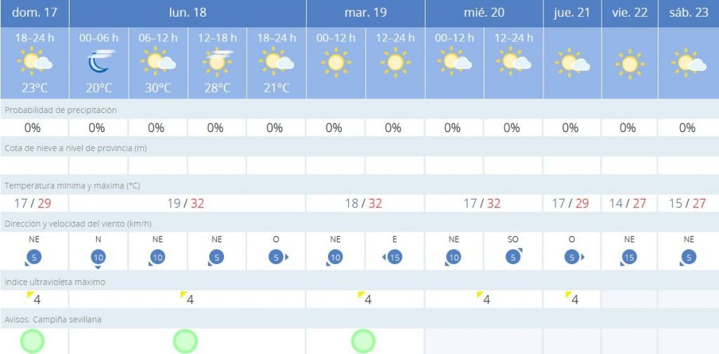 Sevilla comenzará la semana entrante con una subida de las temperaturas este mismo lunes, que se mantendrá también en los dos días siguientes.