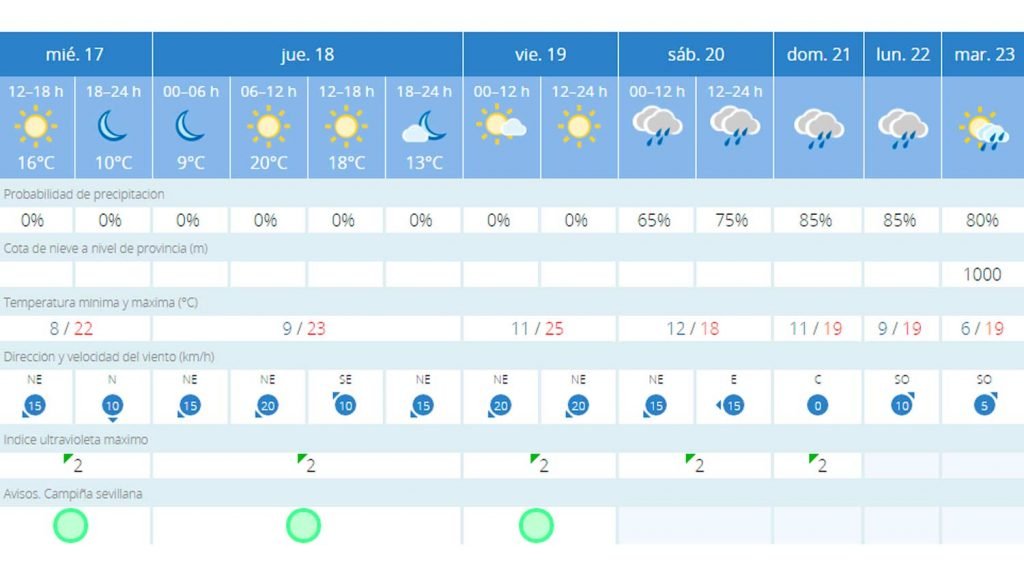Habrá que esperar al paso de los días para comprobar si se activa algún aviso por las lluvias que puede dejar esta Dana en Sevilla y si, finalmente, se cubren de blanco algunas zonas.