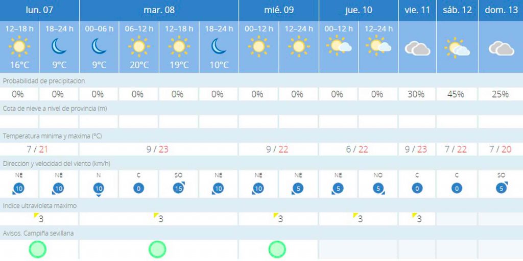 En cuanto a las temperaturas mínimas, se mantendrán aún por debajo de los diez grados centígrados, alcanzando los nueve este miércoles y llegando a los seis del jueves. Para el fin de semana, la probabilidad de lluvias es de entre un 20 y un 45%.