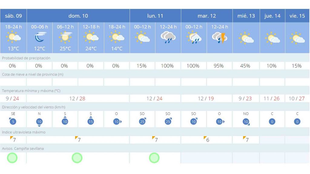 Para este Domingo de Ramos, en Sevilla, se espera un tiempo tranquilo, apacible, que invitará a salir a la calle a ver las procesiones a turistas y sevillanos. Las probabilidades de precipitación se mantienen en el lunes y el martes, donde una borrasca procedente de Galicia hará acto de presencia en la provincia.