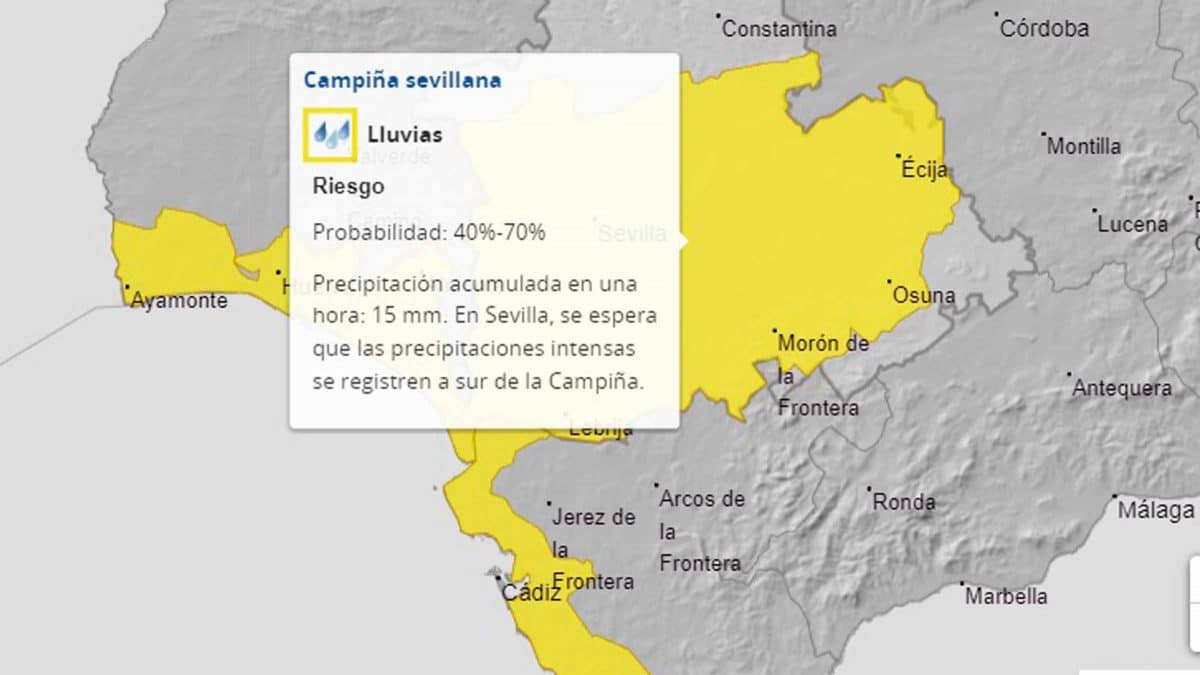 Según la AEMET, la alerta amarilla viene dada por fuertes chubascos que comenzarán en Sevilla desde la noche del martes o madrugada del miércoles y se prolongarán hasta la tarde del miércoles, aunque se irán debilitando en las últimas horas. El resto de la semana será principalmente seca hasta el próximo domingo, cuando las lluvias volverán.
