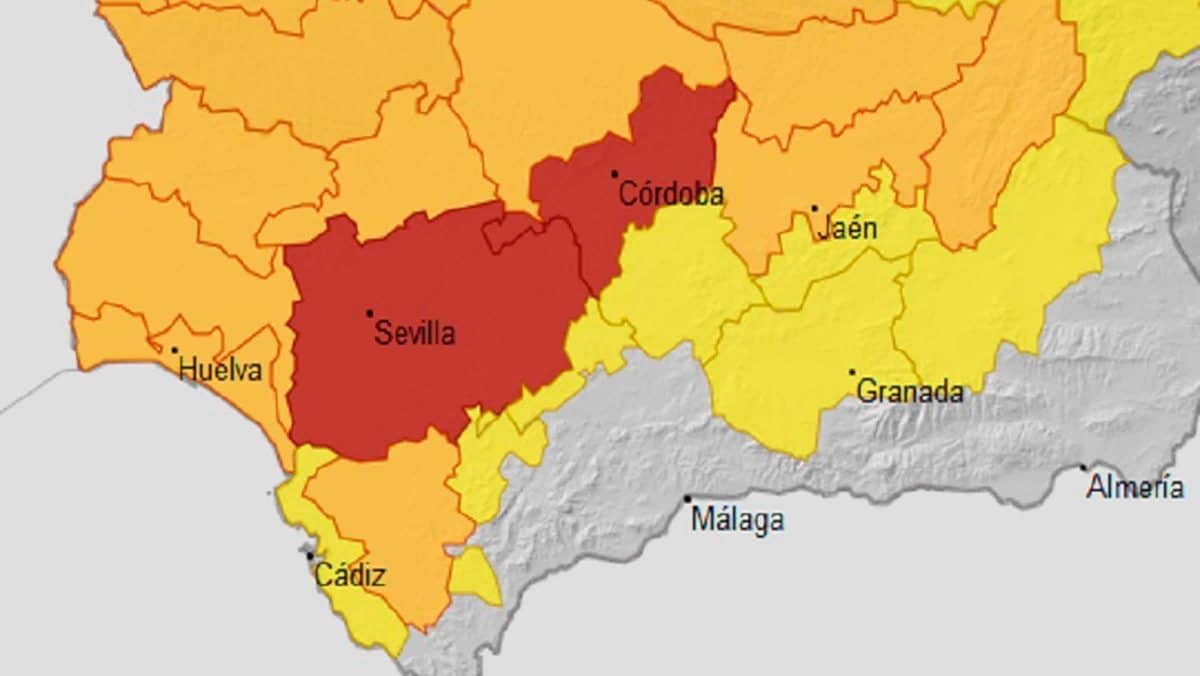 Hasta las 21:00 horas de este lunes, permanecerá activo en toda la provincia de Sevilla el aviso rojo por las altas temperaturas, que llegarán a alcanzar los 44 grados. Para el martes, la AEMET da un aviso naranja por altas temperaturas, con 42 grados de máxima y 24 de mínima. Los termómetros darán un respiro a partir del jueves, descendiendo hasta las 37.