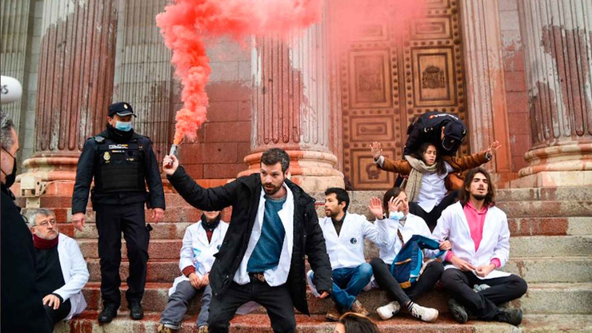 Los científicos que componen Scientist Rebellion (Rebelión Científica) han teñido el Congreso de los Diputados con pintura de color rojo para protestar contra el nuevo informe aprobado este lunes por el Panel de Expertos de Cambio Climático de la ONU (IPCC). Denuncian que el informe ha eliminado algunas «cuestiones importantes» y lamentan la supuesta presión de los lobbies empresariales en la toma de decisión.