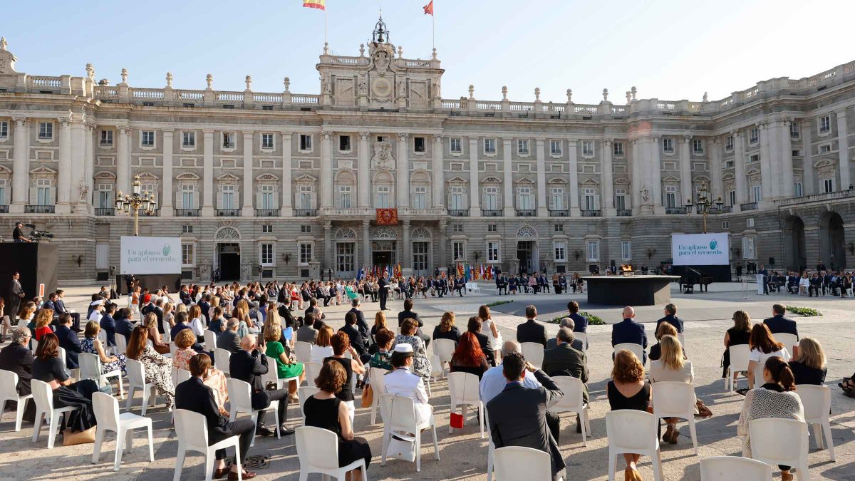 El Ministerio de Sanidad cifra en 109.000 personas las fallecidas por la pandemia en nuestro país. Hoy, en representación de todas ellas, las familias de cuatro profesionales sanitarios que perdieron su vida en el ejercicio de su profesión en la lucha contra la Covid han recibido la Gran Cruz al Mérito Civil durante la ceremonia.