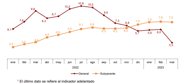 La inflación anual estimada del IPC en marzo de 2023 es del 3,3%, de acuerdo con el indicador adelantado elaborado por el INE. Este indicador proporciona un avance del IPC que, en caso de confirmarse, supondría una disminución de más de dos puntos y medio en su tasa anual, ya que en el mes de febrero esta variación fue del 6,0%