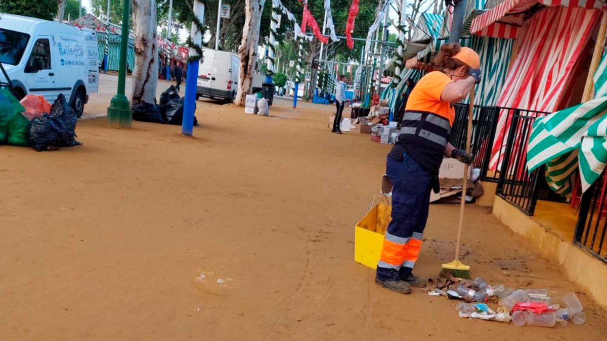 El lunes se recogieron por parte de Lipasam 334.623 kilos procedentes de la recogida de residuos y limpieza viaria del Recinto Ferial y su zona de influencia (incluyendo la recogida selectiva), lo que supone un 50,6  por ciento más que en la misma jornada de 2019 (récord histórico en la Ferias de Abril).