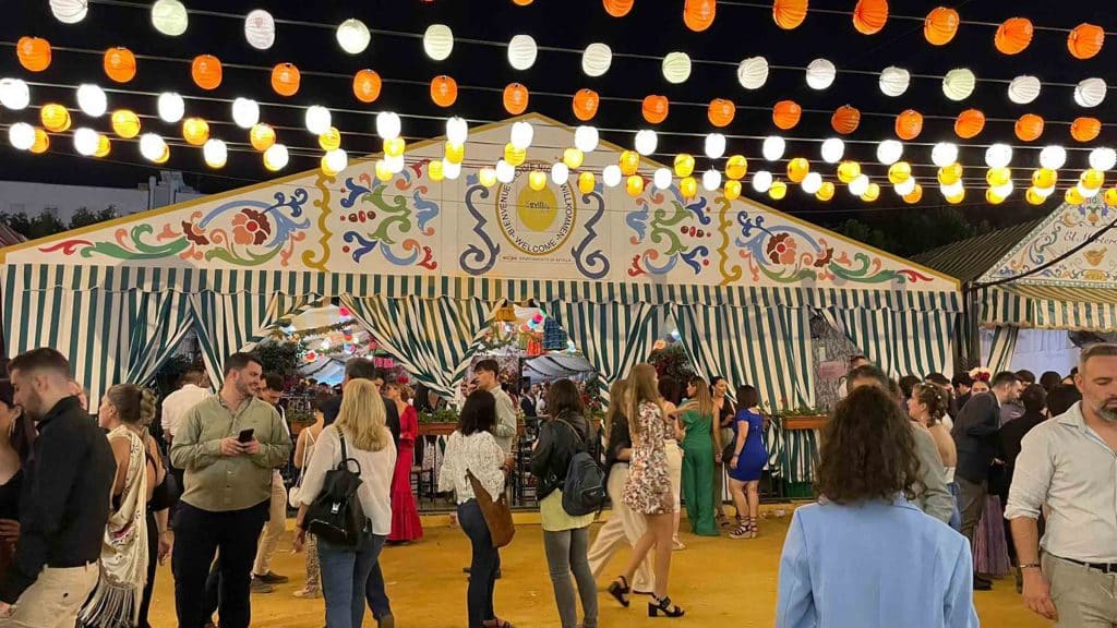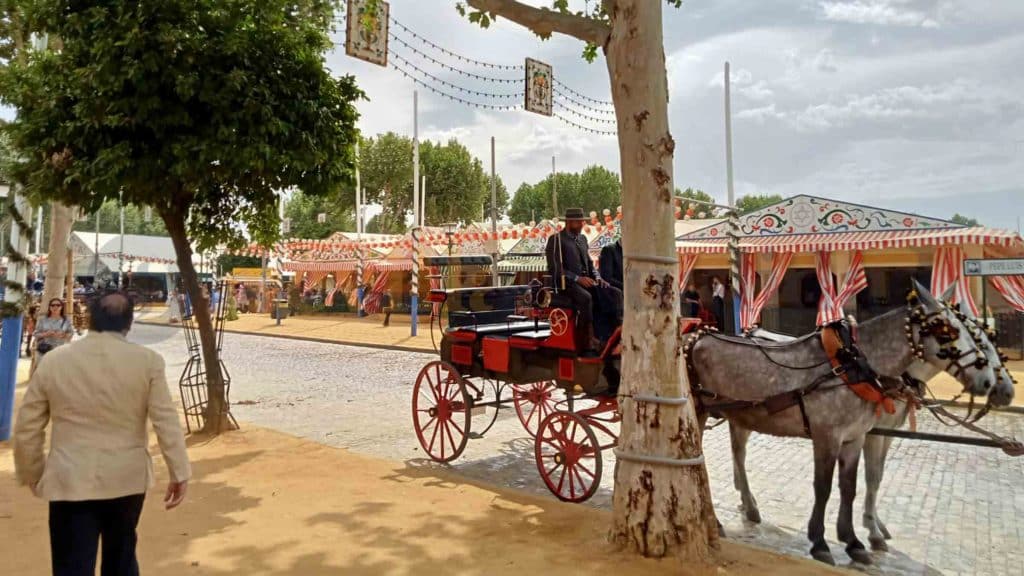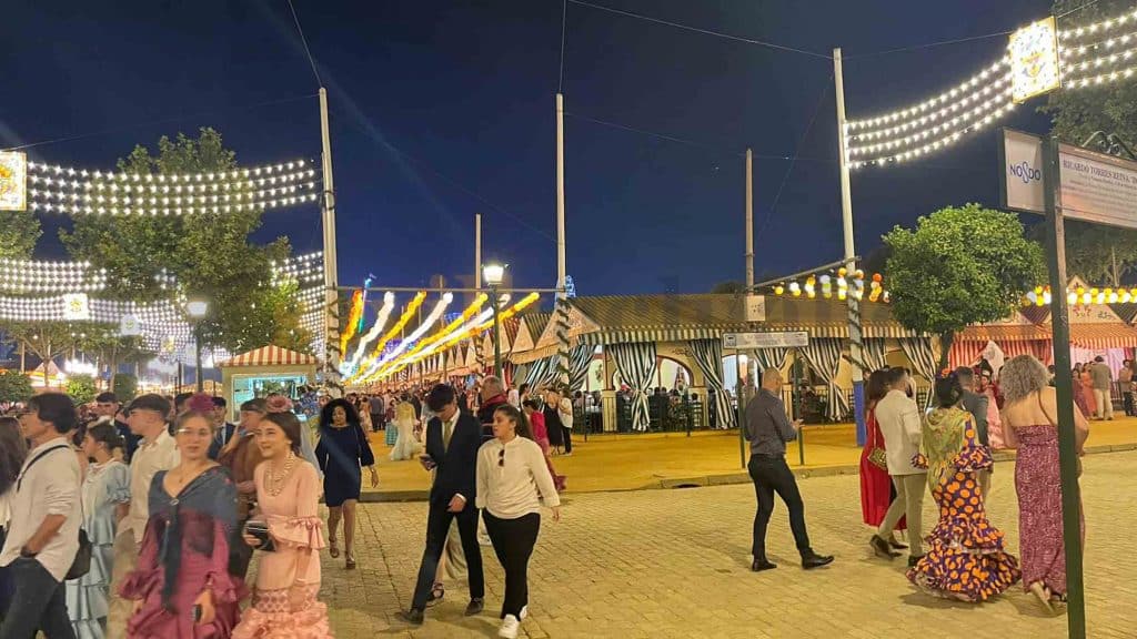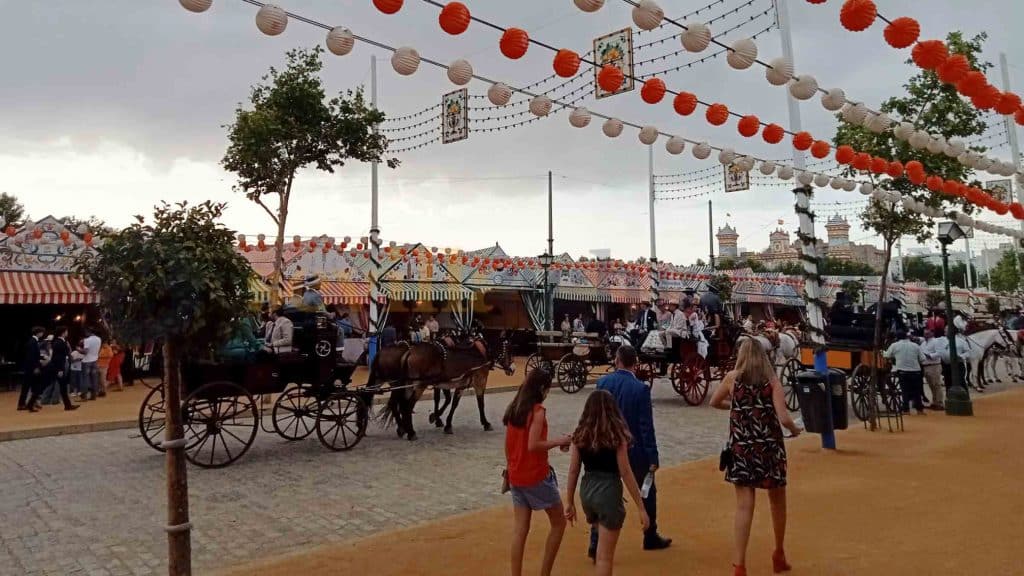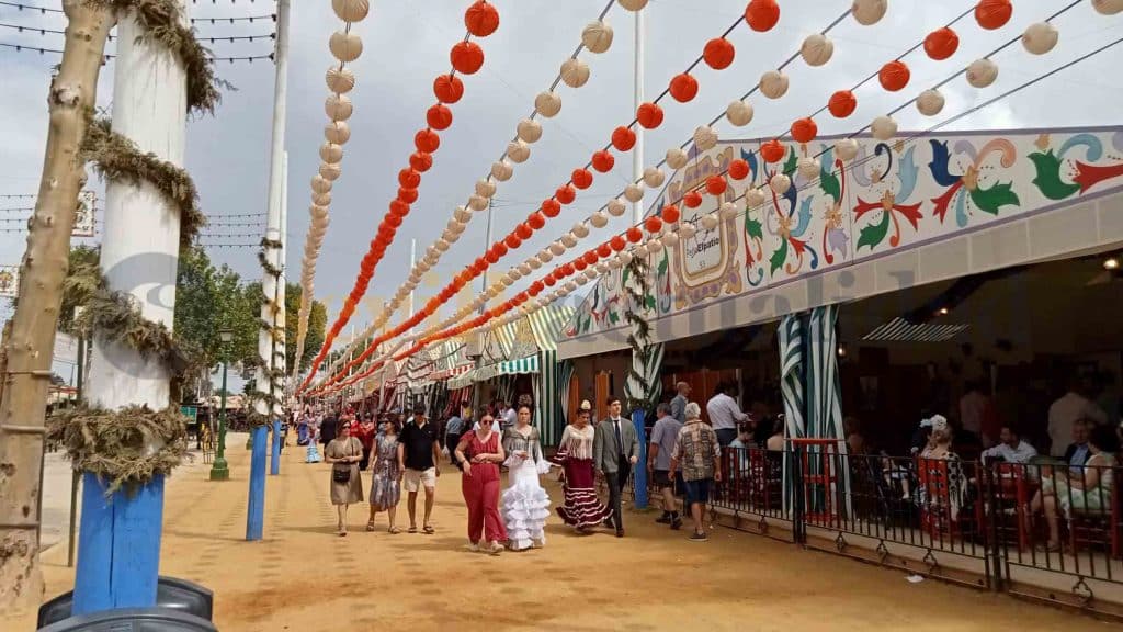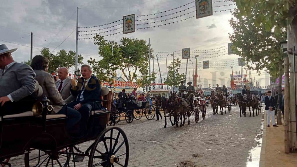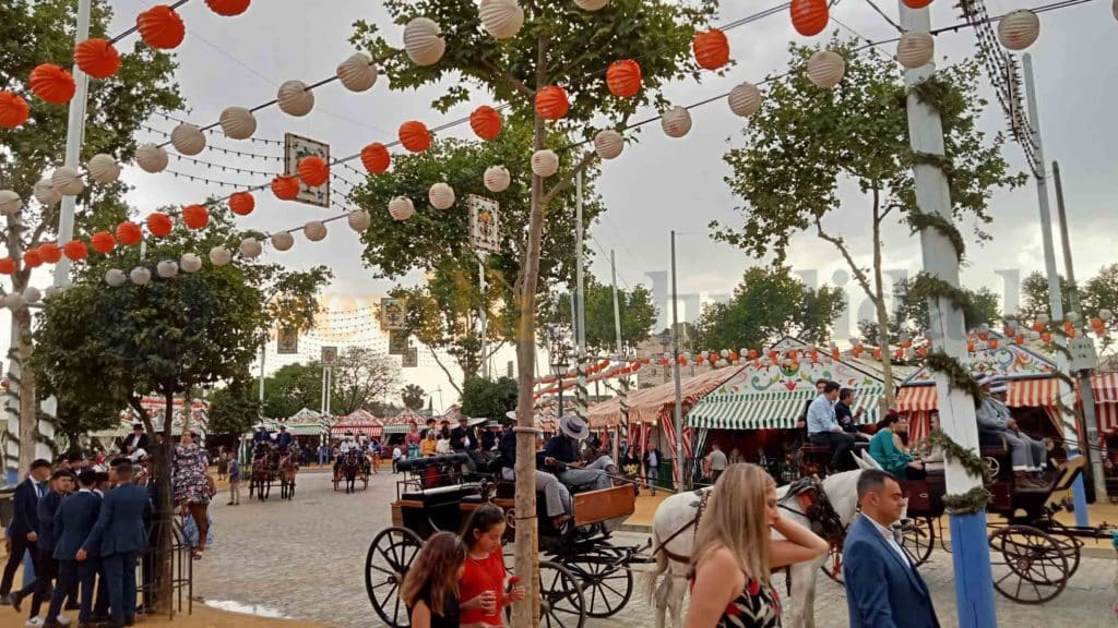 La lluvia hizo acto de presencia en el Real de la Feria este viernes, donde la afluencia de asistentes fue más baja que las jornadas anteriores, siguiendo la tónica del jueves. Las imágenes de casetas vacías fueron frecuentes durante el medio día y las horas más tempranas de la tarde. Sin embargo, al caer la noche, el Real volvió a llenarse de público y las casetas se abarrotaron en el penúltimo día de Feria.